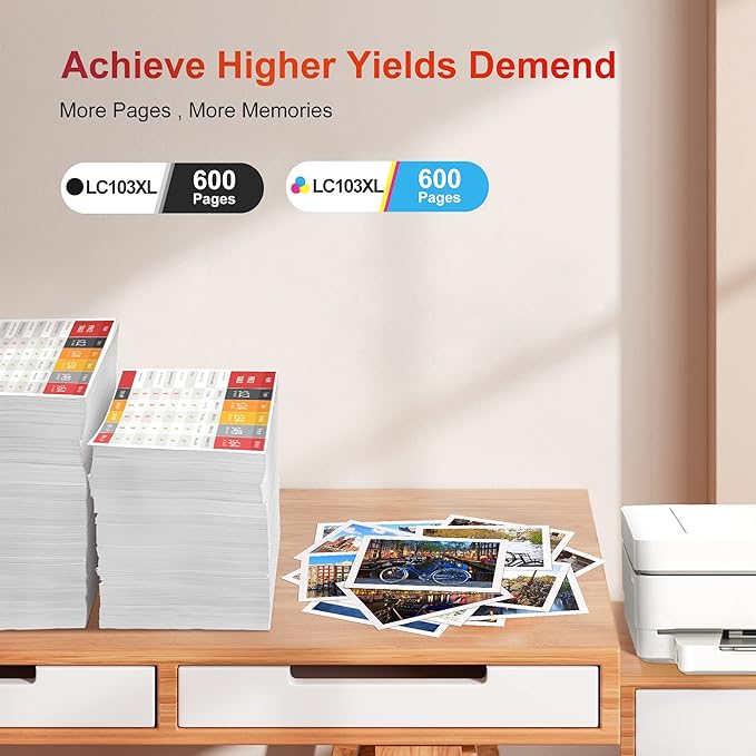 - High Page Yield: Up to 600 pages per black ink cartridge & 600 pages per color ink cartridge ( at 5% coverage )