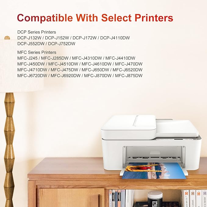 - Compatible Printers: Brother DCP-J132W DCP-J152W DCP-J172W DCP-J4110DW DCP-J552DW DCP-J752DW MFC-J245 MFC-J285DW MFC-J4310DW MFC-J4410DW MFC-J450DW MFC-J4510DW MFC-J4610DW MFC-J470DW MFC-J4710DW MFC-J475DW MFC-J650DW MFC-J6520DW MFC-J6720DW MFC-J6920DW MFC-J870DW MFC-J875DW Inkjet Printer