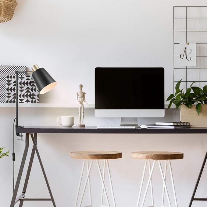 - MODERN: clean geometric lines and a black finish are highlighted by luxurious gold accents to bring the Lex Desk Lamp into a truly modern design