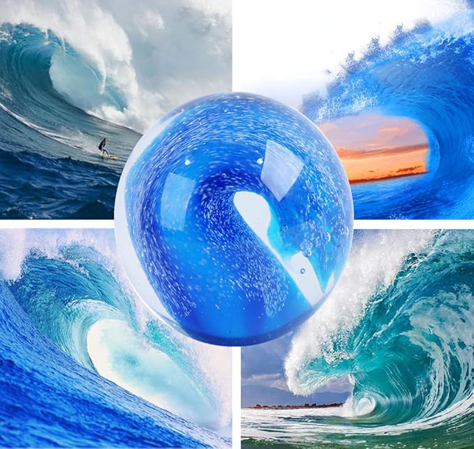 EUSTUMA Hand Blown Glass Figurines Ball Ocean Waves,Paperweight Glass Ball,Home Decor Collectible,Aquarium Decor,Office Decor Ocean Lovers