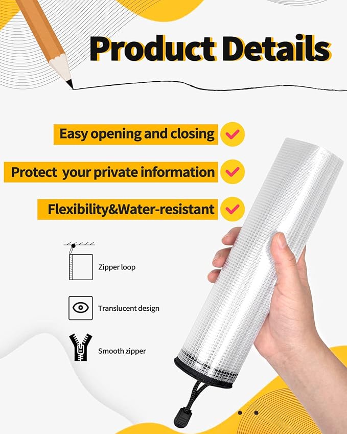 - DURABLE & PORTABLE: SUNEE zipper file bags are made of thick vinyl material, water-resistant, moisture-resistant. Each metal zipper is equipped with a rope loop, which is strong and durable. It can be used as a hanging ring and ready to hang
