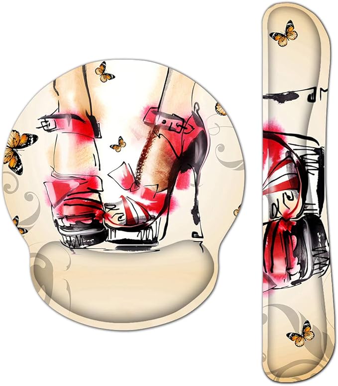 Ergonomic Keyboard Mouse Pad Wrist Rest Support Set for Laptop/Computer/Desktop,Memory Foam Hand Rest Wrist Cushion for Gaming/Office,Lightweight Comfortable & Pain Relief (Red High Heels)