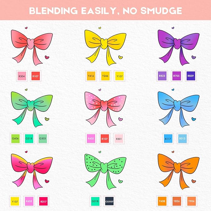 - Seamless Blending and Color Mixing. High-quality Japanese alcohol marker ink blends seamlessly to achieve beautiful coloring effects, excellent for both beginners and professionals. Smooth color mixing and blending, never worry about uneven, blotchy ink marks anymore.