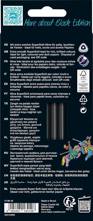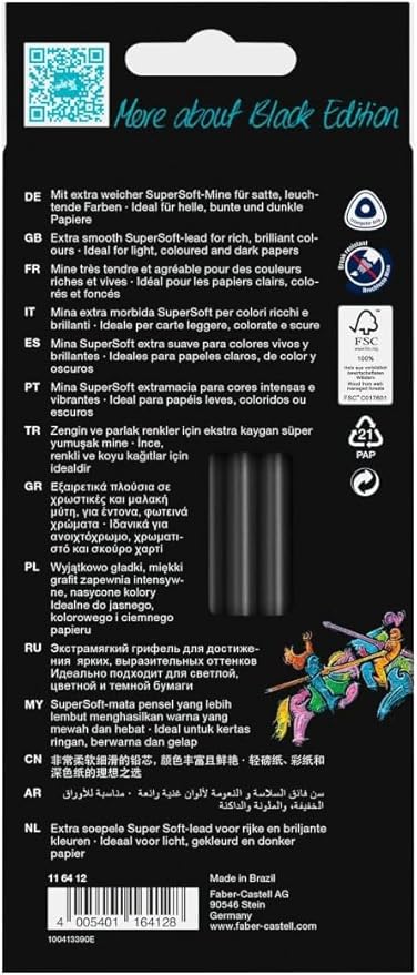 - BREAK-RESISTANT, SOFT CORE LEAD: Faber-Castell's Black Edition coloring pencils are ideal for professionals seeking high-quality art tools. Designed with extra break-resistant lead that is glued along the entire length of the pencil. This feature ensures excellent point retention for endless coloring, drawing, and easy sharpening