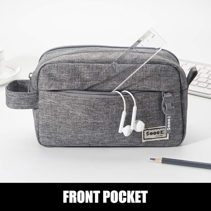 Sooez High Capacity Pencil Case, Big Pencil Bag Pouch Box Organizer Pen Case, Portable Journaling Supplies with Easy Grip Handle & Loop, Asthetic Supply for Girls Adults, Grey