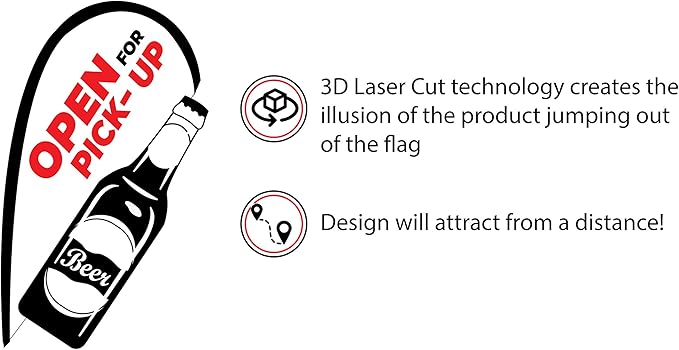 Indoor Outdoor Double Sided Window Flag for Business Sign Drive Thru, Delivery, Pick Up, Essential Business and We are Open Small 3D Flag Kit for Small Business (Beer)