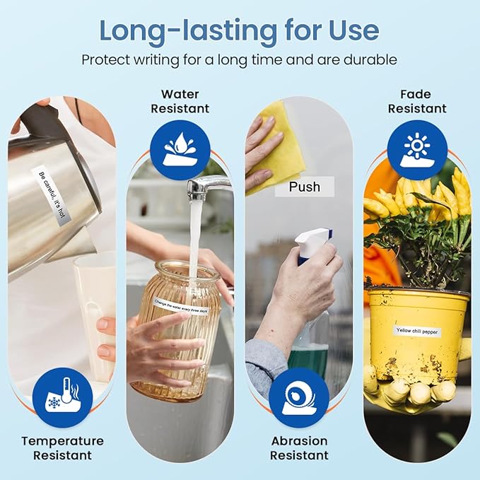 - [Features] Compatible with Dymo d1 label maker refills has features of withstand water/ oil/ abrasion/ temperature/ fade, etc. Strong adhesive but zero sticky residue when removed. Split backing for easy peeling dy