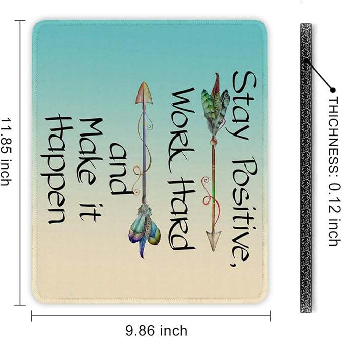 Auhoahsil Mouse Pad, 12 x 10 in Thick Rubber Premium-Textured Non-Slip Stitched Edges Waterproof Square Mouse Mat with Cute Pattern for Gaming Work Computer Office, Larger, Inspirational Quotes