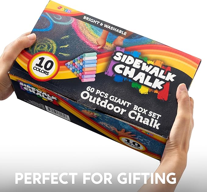 JOYIN 60 PCS Sidewalk Chalk Set (10 colors), Non-Toxic Washable Outdoor Jumbo Chalk Set for Painting on Chalkboard, Art Play and Playground Toy