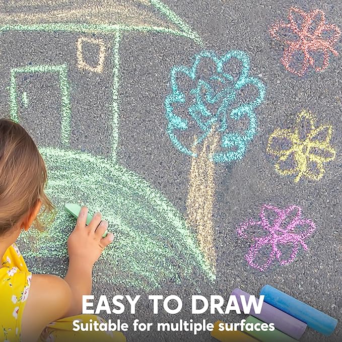 - SPECIAL DESIGN & EASY TO USE. Our Washable Chalks Set will allow your children to get outside and play, give them the opportunity to bring all kinds of artworks outside. Each chalk will give a vibrant color onto any driveway or sidewalk. The chalk can be washed on any surface, you don't have to worry about permanent messes.