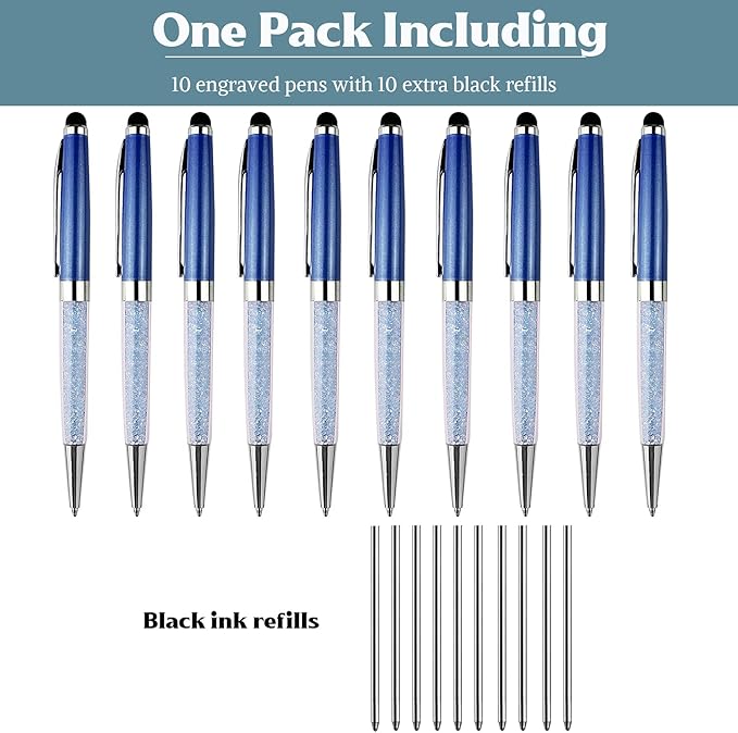 Ancolo Personalized Gift Pens - Ballpoint Pen with Stylus Tip, Crystal Diamond Pen, Engraved Your Message Gift for Graduate Lawyer/Professor 10PCS/ Pack (Navy blue)