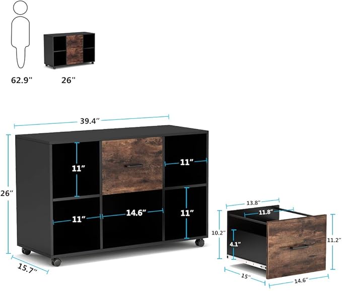 - 【FILE DRAWERS & LARGE OPEN STORAGE】Two drawers keep hanging LETTER SIZE file folders organized and extends fully for easy access. Four shelves can easily isolate the space according to your usage, providing spacious storage space for home office essentials.