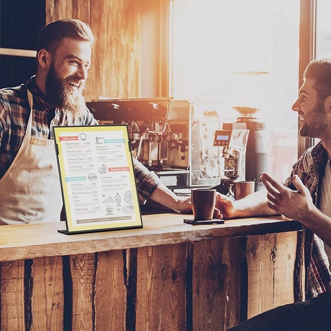 - Multipurpose Widely Use: Capture attention by displaying ads, signs, announcements, brochures, flyers, certificates, photos, restaurant menus, and more. Ideal for offices, hotels, libraries, schools, churches, restaurants, bars, conferences, exhibitions, fairs, trade shows, weddings, and other events