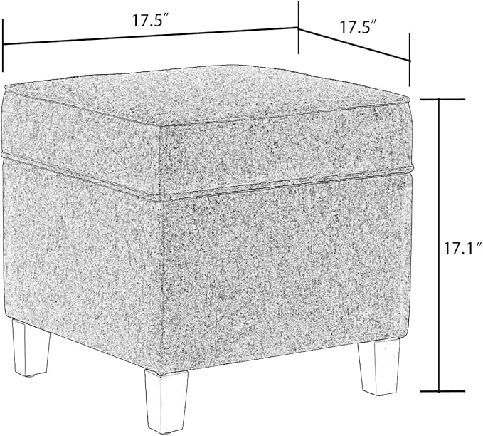 - Spacious Square Storage Ottoman for Everyday Living—This 17.5" x 17.5" x 17.1" navy blue square ottoman offers ample hidden storage (13.2" x 13.2" x 9.5") for organizing blankets, books, and toys. A perfect storage ottoman for anyone needing smart space-saving furniture in their living room or bedroom.