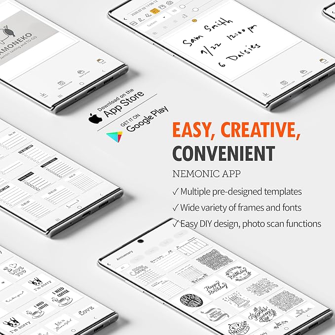 - USER-FRIENDLY MOBILE APP. The Nemonic app offers diverse templates and fonts, integrating smoothly with MS Office files. Its scan-and-print function eliminates handwritten memos to enhance efficiency in various settings. This label sticker printer simplifies your label creation process effortlessly.