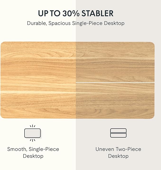- AMPLE WHOLE-PIECE DESKTOP: With its one piece eco-friendly desktop, this standing desk provides plenty of room for your computer setup, documents, and accessories, creating a well-organized and productive work environment. Due to hand measurements, desktop dimensions may vary slightly by 0 to 1”.