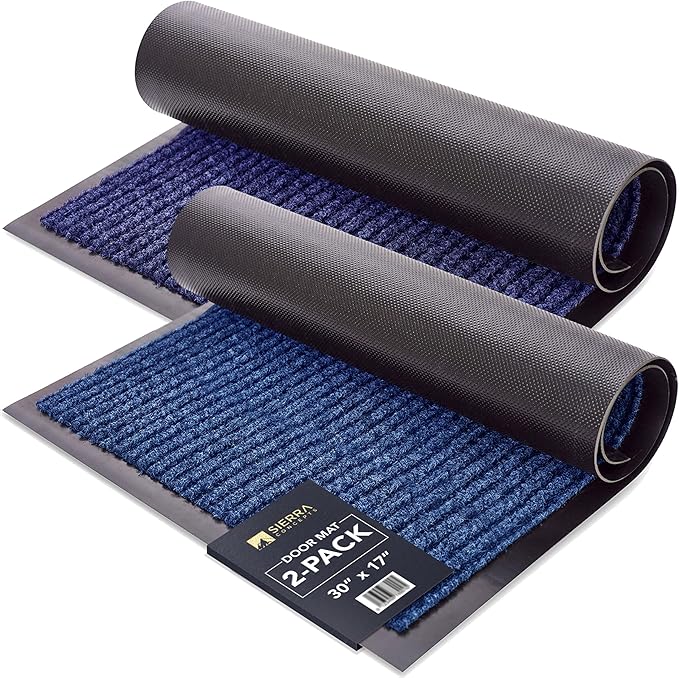 - Includes 2 Indoor Outdoor Floor Mats: Enjoy two amazing heavy duty high quality ribbed polyester door mats (30" x 17") that will be perfect welcome for the everyday home. Amazing value 2-Pack Blue Color.