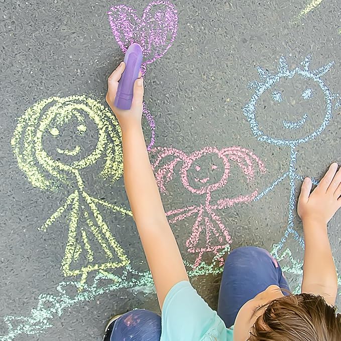 - UNIQUE DESIGN & EASY TO USE. Our Jumbo Outdoor Chalks Set will allow your children to get outside and play, giving them the opportunity to bring all kinds of artworks outside. Each chalk will give a vibrant color onto any driveway or sidewalk. The chalk can be washed on any surface, you don't have to worry about permanent messes.