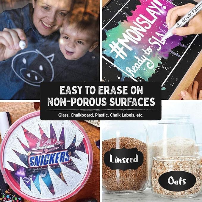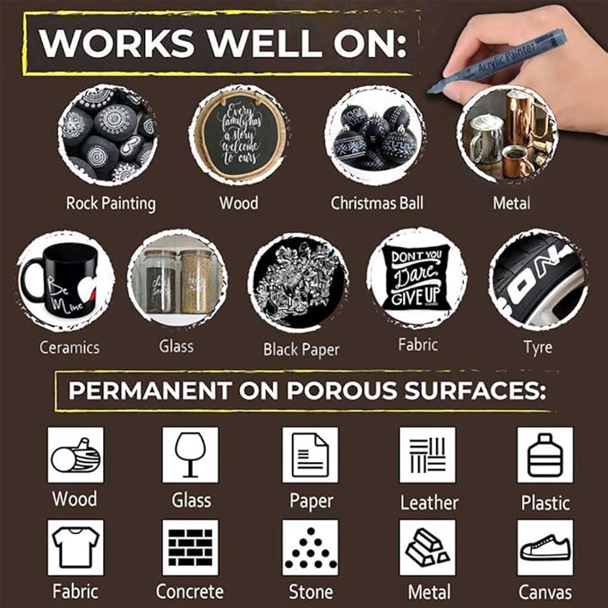- ⭐WORK FOR ANY SURFACES -- Such as creating labels, Christmas ornament, Halloween pumpkin painting, decorating wedding chalkboard, painted glasses , or rock supplies art projects. Perfect for DIY ,creating loads of craft projects, from rock painting to mug art and ornaments! Nawod black&white paint markers are ideal for artists, students, teenagers & adults.