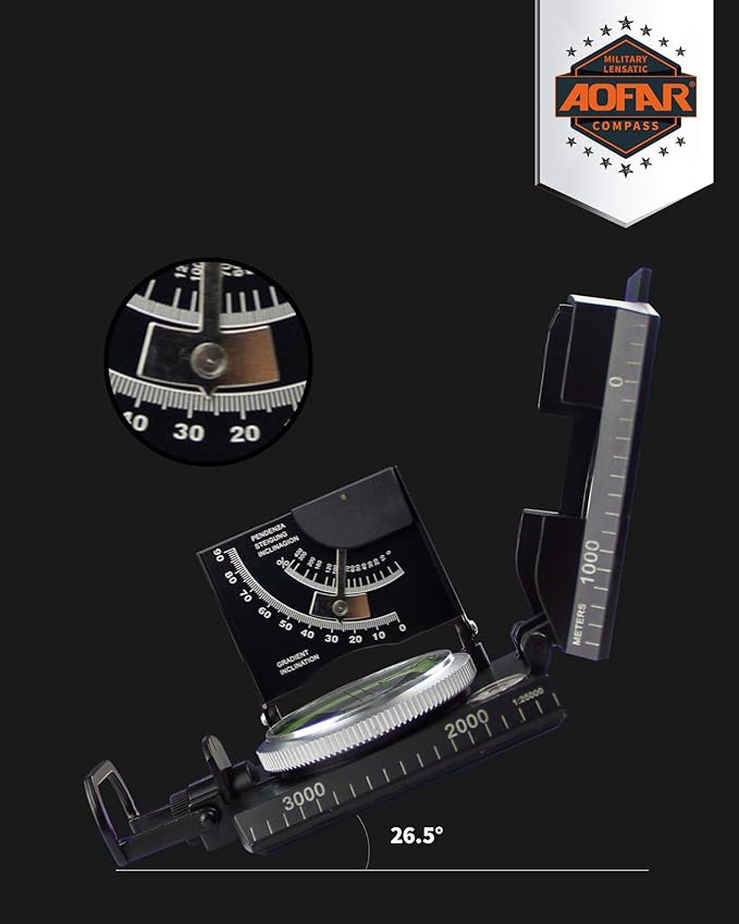 AOFAR AF-4074 Military Compass for Hiking,Lensatic Sighting Waterproof,Durable,Inclinometer for Camping,Boy Scount,Geology Activities Boating