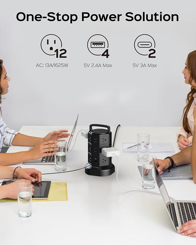 - ▶【ENERGY SAVING】Each layer has an independent switch to help you save electricity when the other outlets are not in use. This surge protector power strip tower is designed to support worldwide voltages (110V-240V). If it is used under 125V, the max power will be 125V x 13A = 1625W. Formula P=UI.(P=Power, U=Voltage, I=Current) Please do not exceed the max wattage.