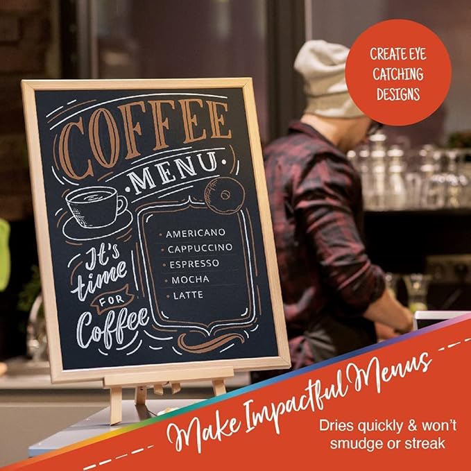 - Vibrant Colors: The liquid chalk markers for chalkboard signs come in 24 colors with 1 white chalk marker. They have 6mm reversible tips (round or chisel) to create different designs that extend the life of each neon dry erase marker