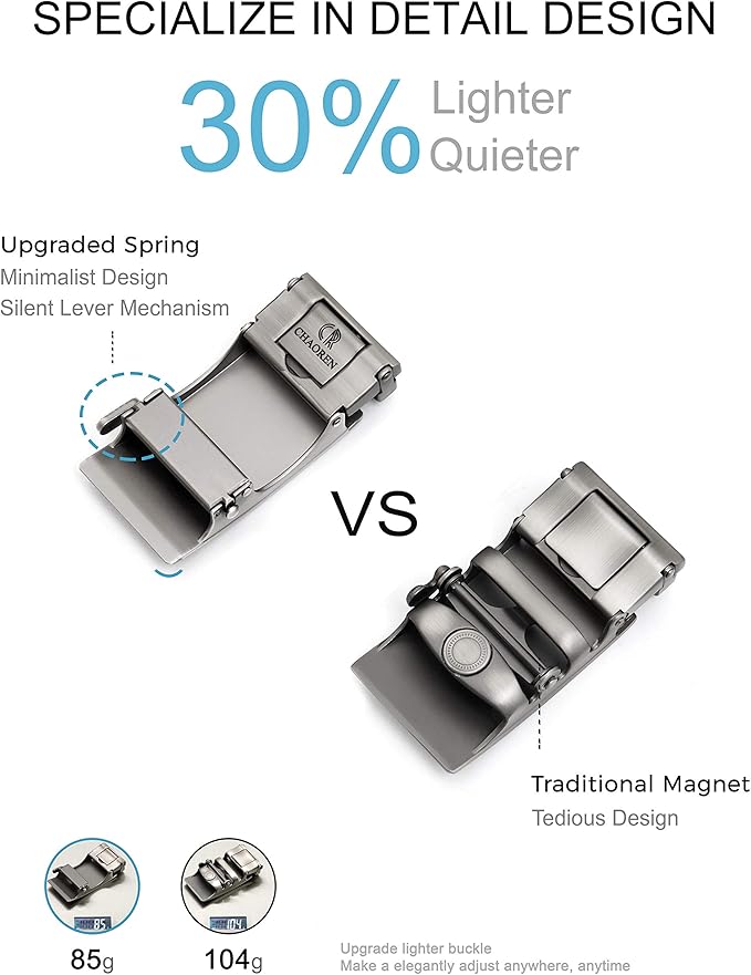 - Great Gift Choice: Elevate any occasion with the premium experience of CHAOREN. Our fashion design belt complements various outfits and events, making it a thoughtful and stylish gift choice for men. With luxury packaging as standard, make a lasting impression with a CR leather ratchet belt.