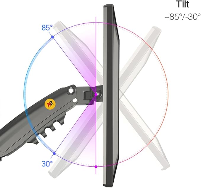 - Customize your working condition, Built-in with ultra-precision gas-strut, Allows +85° to -30° screen tilt adjustment, 360° rotation for landscape or portrait mode; Upright lift 10.2" (260mm) and +90° to -90° degrees swivel, Hold your monitors with an unparalleled range of motion.