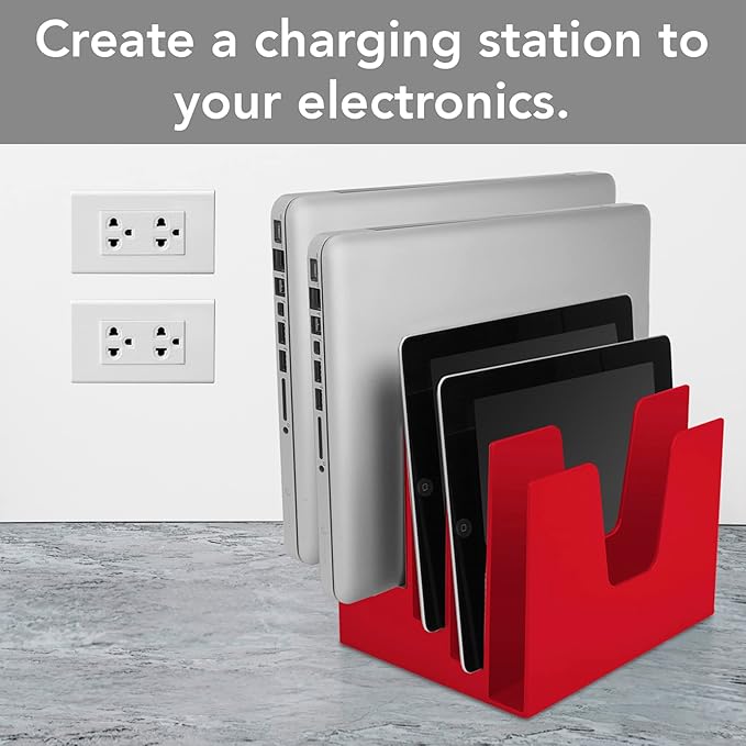 Acrimet 5 Section Incline File Sorter Organizer, Mail, Folder, Letter Desk Organizer, Rack for Office Organization Desktop (Plastic) (Solid Red Color)