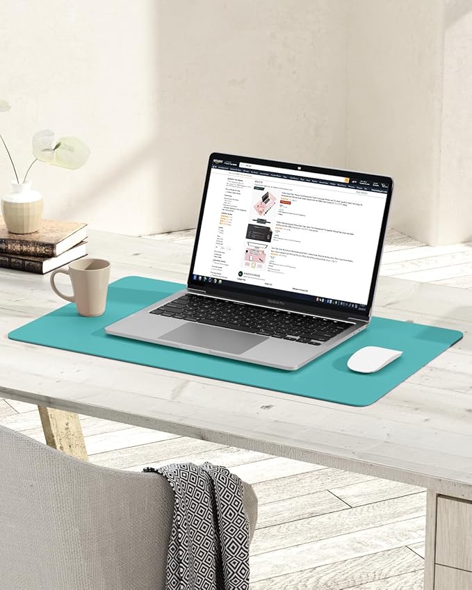 YSAGi Non-Slip Leather Desk Pad, Waterproof Laptop Computer Desk Keyboard Mat, Table Protector Blotter Mat, Large Mouse Pad for Office/Work/Home/Decor(Green Blue, 23.6" x 13.7")