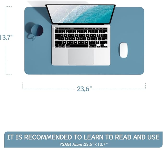 YSAGi Non-Slip Leather Desk Pad, Waterproof Laptop Computer Desk Keyboard Mat, Table Protector Blotter Mat, Large Mouse Pad for Office/Work/Home/Decor(Blue, 23.6" x 13.7")