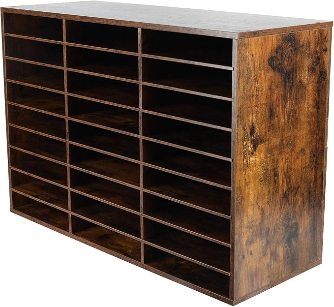 - 27-Compartment Mail Sorter Organizer: Hold 500+ A4 paper sheets in each compartment in this mail organizer. With 27 compartments (12 x 9 x 2.1 inch eash slots), store comics, magazines, and travel brochures effortlessly. EPA-certified particleboard ensures long-term durability for office/classroom use.