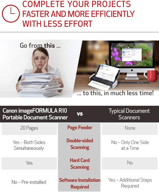 - Model Name : Canon imageFORMULA R10 Portable Document Scanner with Scanning Software