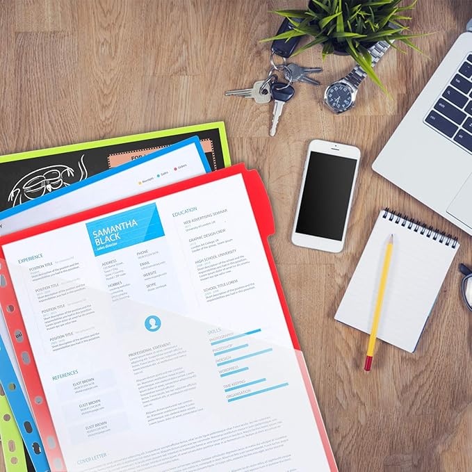 - Instant Visibility & Generous Storage: Each tab divider features a crystal-clear front pocket for effortless browsing and organizing loose papers, receipts, or notes. while the ergonomic slanted design resists slips and moisture damage during document handling—crafted from tear-resistant poly material for daily durability in office, school, or home organization systems.
