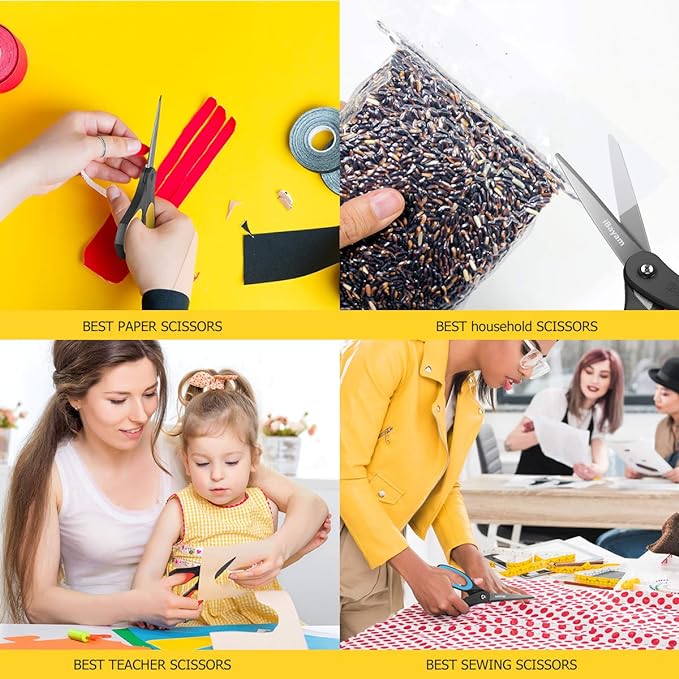 - ✅Ultra Sharp Blades Heavy Duty Scissors: We choose Strong Stainless Steel Rust Resistant Blades enables high-density steel that makes 3 times harder than normal stainless steel and are smoother cutting.