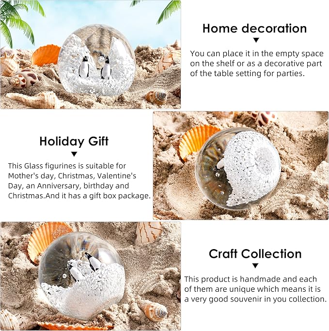 - DESIGN : The overall spherical design of the gift crafts, which is simple and has a dreamy atmosphere, incorporates glass material, which is translucent and elegants.The glass penguin figurine has a realistic shape and vivid image,