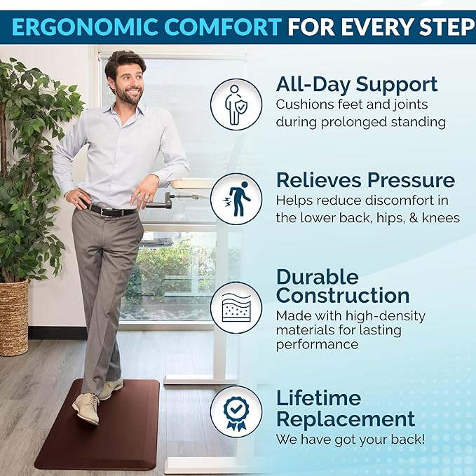 - Exceptional Comfort Anti Fatigue Mat: ComfiLife kitchen mats for floor enhance comfort while standing. It is professionally engineered and can be used as padded kitchen mat or for your standup desk that will not lose support over time. Ideal for use as a standing desk mat., kitchen mats cushioned anti fatigue, kitchen floor mat or anti-fatigue mats for kitchen floor.