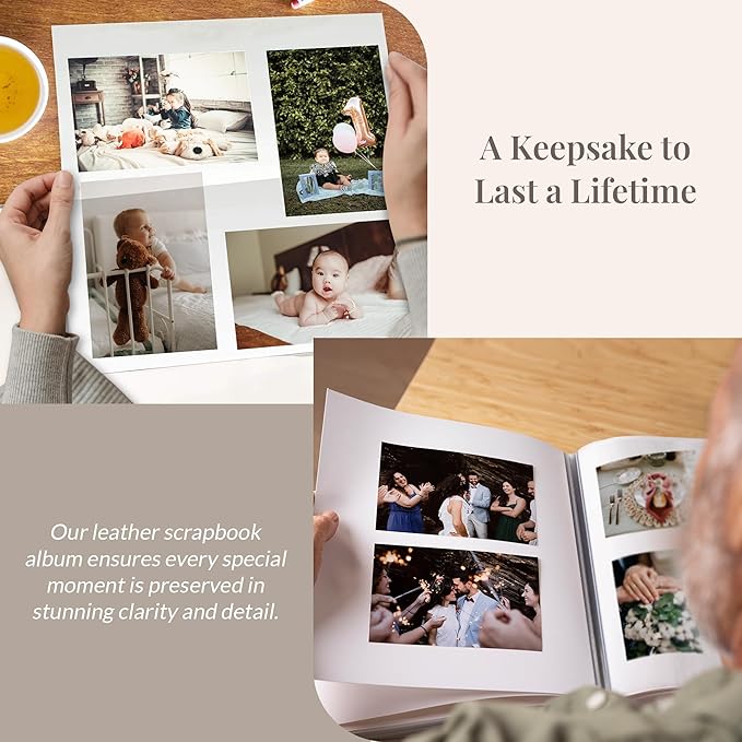 - Capture Every Moment: Featuring 30 double-sided archival quality white paper pages and clear pockets, this leather photo album offers space to showcase your photos and keepsakes. Our leather scrapbook album ensures every special moment is preserved in stunning clarity and detail.