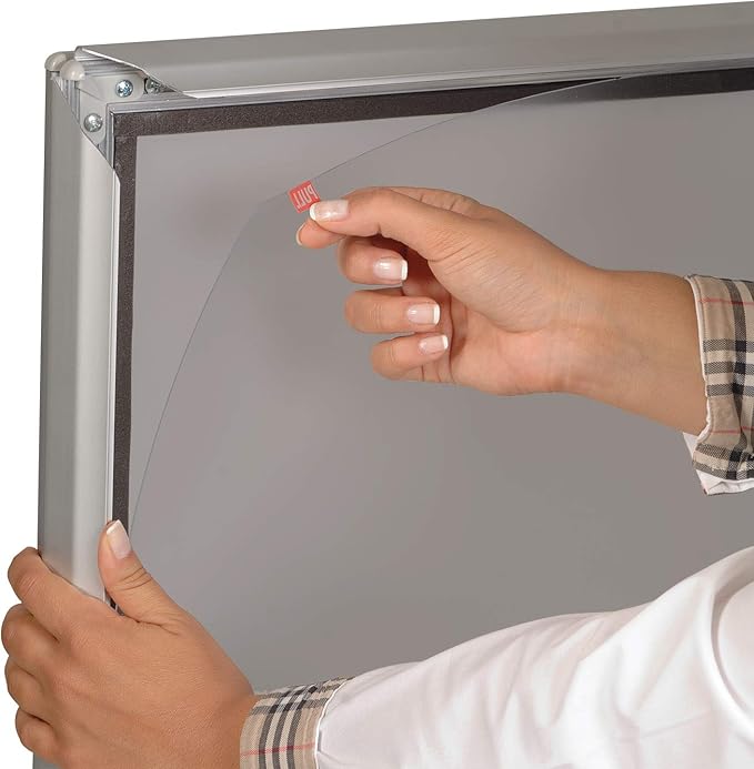 - HEAVY DUTY OUTDOOR ADVERTISING DISPLAY: This sidewalk poster holder comes with double sided Snap Frame. The use of this aluminum frame is fairly easy. To load or change a graphic, simply snap open the four spring-loaded frame edges, remove the anti-glare transparent cover and place graphic, picture, photo, poster and or artwork as required, then snap close the frame edges. The anti-glare cover allows a clear view of the print, poster and protects the artwork from dust and direct light.