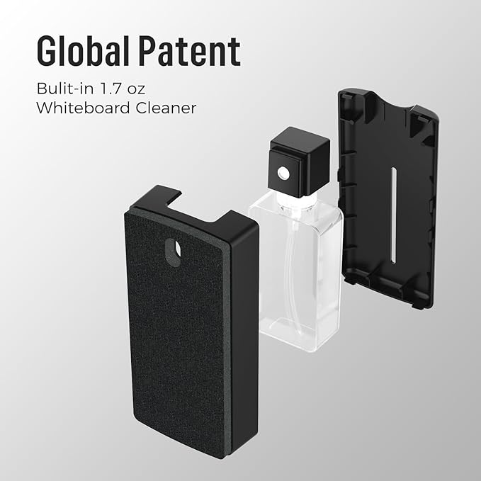 - SMART ALL-IN-ONE DESIGN - Innovative design for whiteboard cleaning with global patent. Combines dry eraser and whiteboard cleaner in one, clean surfaces more efficiently and is time-saving