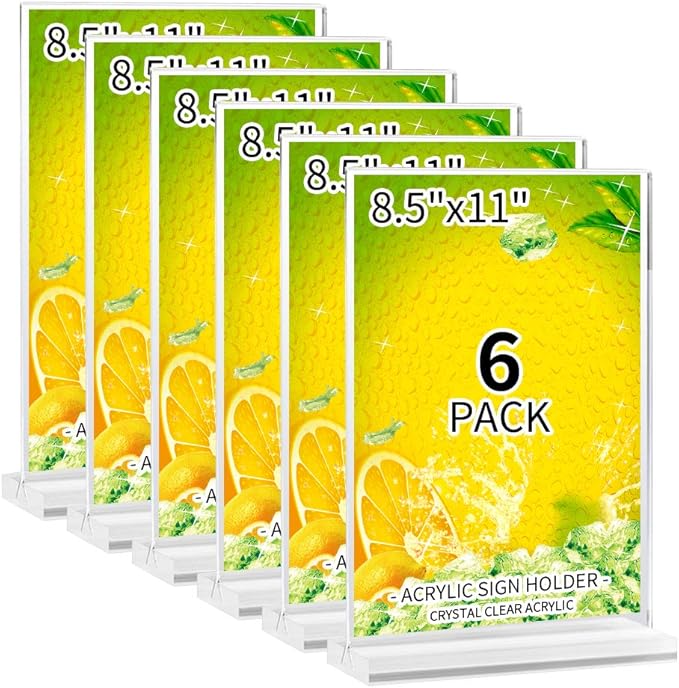 Acrylic Sign Holder 8.5 x 11-Acrylic T-Shaped Desktop Display Stand, Sign Holder,Menu ad Frame. Suitable for Restaurants, Promotions, Photo Frames, Events, Meetings (6 Pieces)
