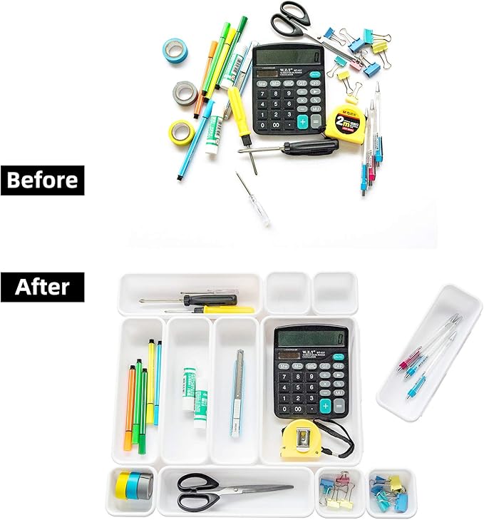 - Widely Used: Organizer bins are perfect for dresser, bathroom drawer, kitchen drawer, office desk etc. Easy to find your things when you need.