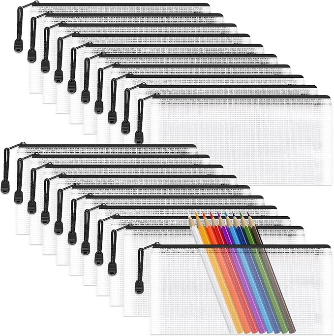Umriox Clear Pencil Pouch, 9.2 x 4.7 in (Black, 20 Packs), A6 Pencil Bags with Zipper Bulk, Mesh Zipper Pouch for Bill Stationary Cosmetics Travel Storage