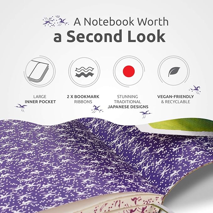 - ELEGANT TRADITIONAL JAPANESE CRANES EDGING: Each of the 154 numbered pages makes part of a fore edge cranes (Jap. Tsuru) decoration symbolizing longevity, good fortune, and a happy marriage.
