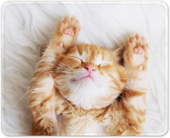 Auhoahsil Mouse Pad, 12 x 10 in Cute Cat Theme Computer Mouse Pad for Desk, Premium-Textured Non-Slip Rubber Stitched Edges Waterproof Square Mouse Mat for Gaming Work Wireless Mice, White