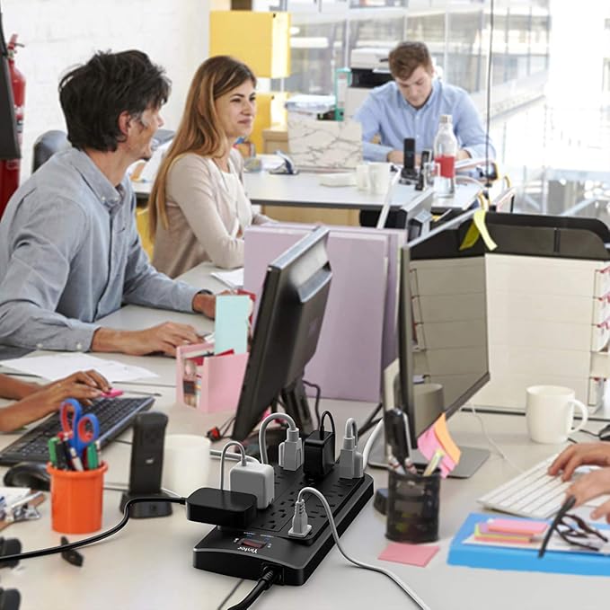 - Safety and Certificate: ETL safety certified, with extension cord and other major components certified by UL. The over current protection switch limits the power strip's working current to certain setting, so it will not get hot during usage. Environmental protection and fire-resistance PC shell with flame retardant at 1382℉ makes it more durable and longer lifetime.