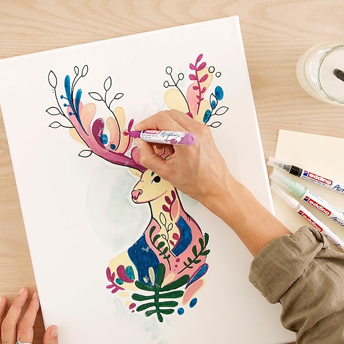 - Fine & Medium Nibs: Includes 2 fine-tip (Edding 5300) acrylic markers for details and 6 medium-tip (Edding 5100) markers for bold strokes. Whether outlining intricate designs or filling larger areas, these acrylic markers provide excellent control and smooth application.