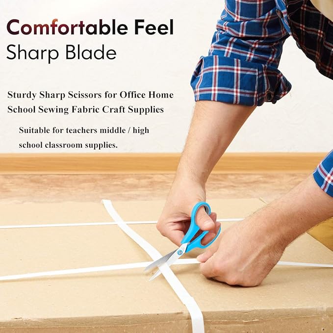 - Comfortable Use: Soft-grip handles for comfortable use, can be used left- or right-handed. Adjustable stainless-steel blade pivot for strength and smooth opening and closing.Work perfectly, and are comfortable in your hand.Can be used as scissors for office, scissors for school, scissors for home, 8 scissors, scissors bulk, Craft scissors, Craft Shears, fabric Scissors, heavy duty scissors, scissors pack, Left scissors, sharp scissors, sewing scissors.