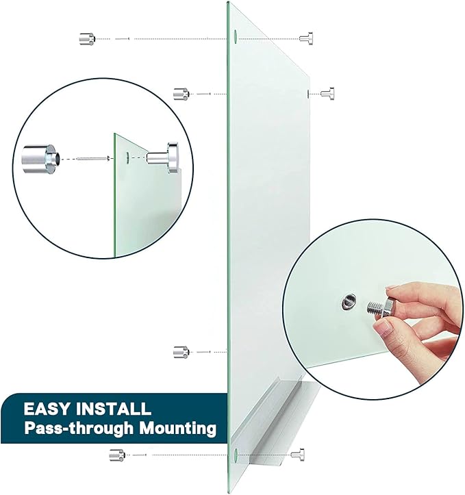 - 【Easy Mounting】: Pass-through mounting makes installation simple. With our wall-mounting kits and assemble instructions, you can hang the frosted glass board on the wall easily. If you want, you could line two or four glass boards up perfectly side by side.