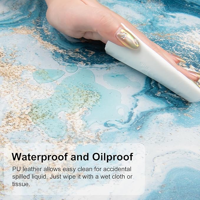 - Waterproof & Easy to Clean - Made of water-resistant and durable PU leather, this mousepad help prevent your desk from damages such as scratches, stains, spills and heat. Easy to clean, just wipe with a wet cloth or tissue.
